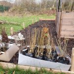 We set about clearing the invasive mare’s tail from the beds- an ongoing battle! Paths were mown and strimmed and we discovered cabbages, fruit bushes and even some lettuces still growing!